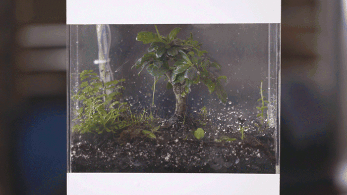 "Project Oasis is a self-sustaining plant ecosystem that reflects outside weather patterns by creating clouds, rain and light inside a box," read the project's description on its website.